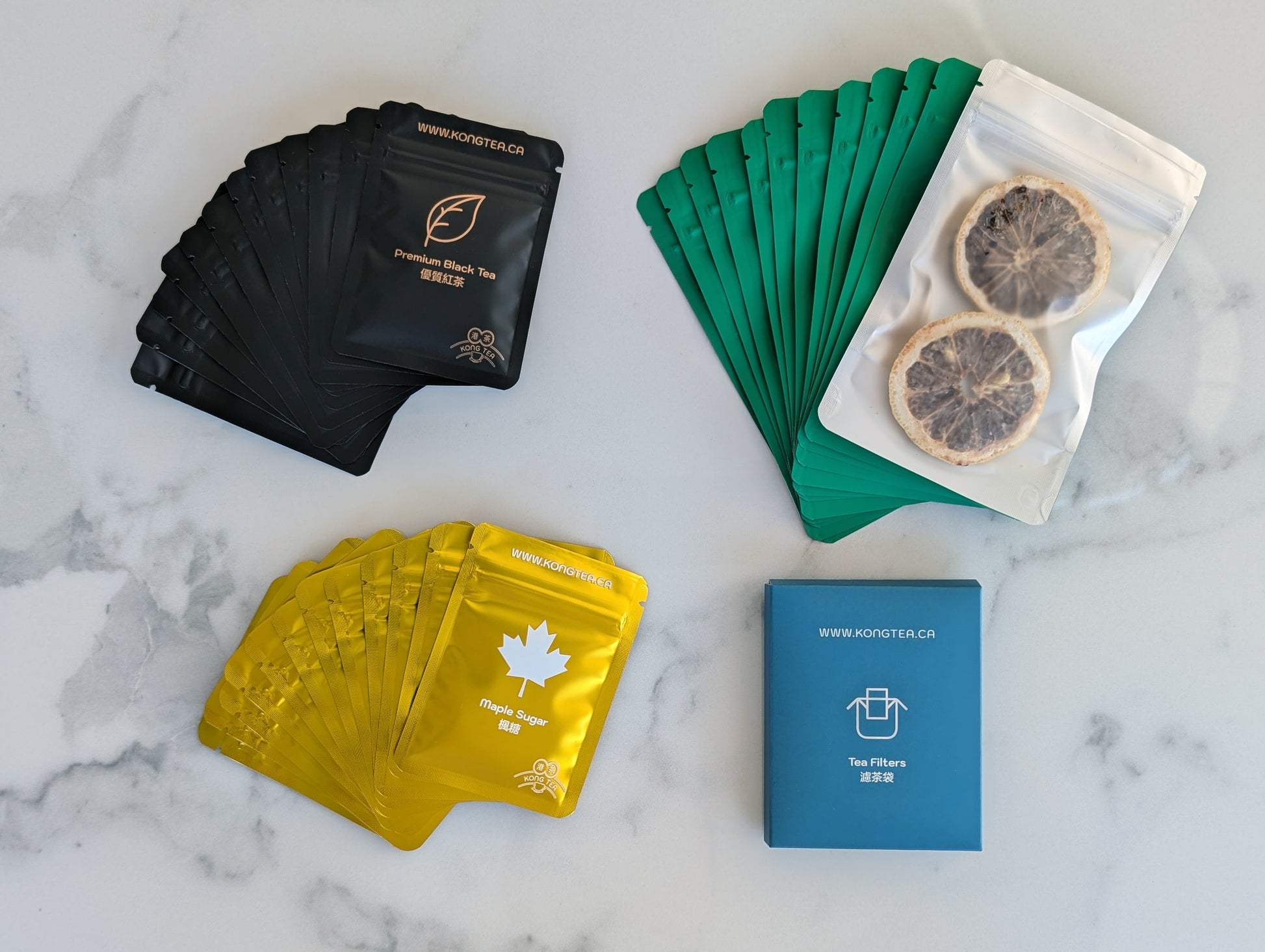 Refills include tea, freeze-dried lemons, organic maple sugar and tea filters.