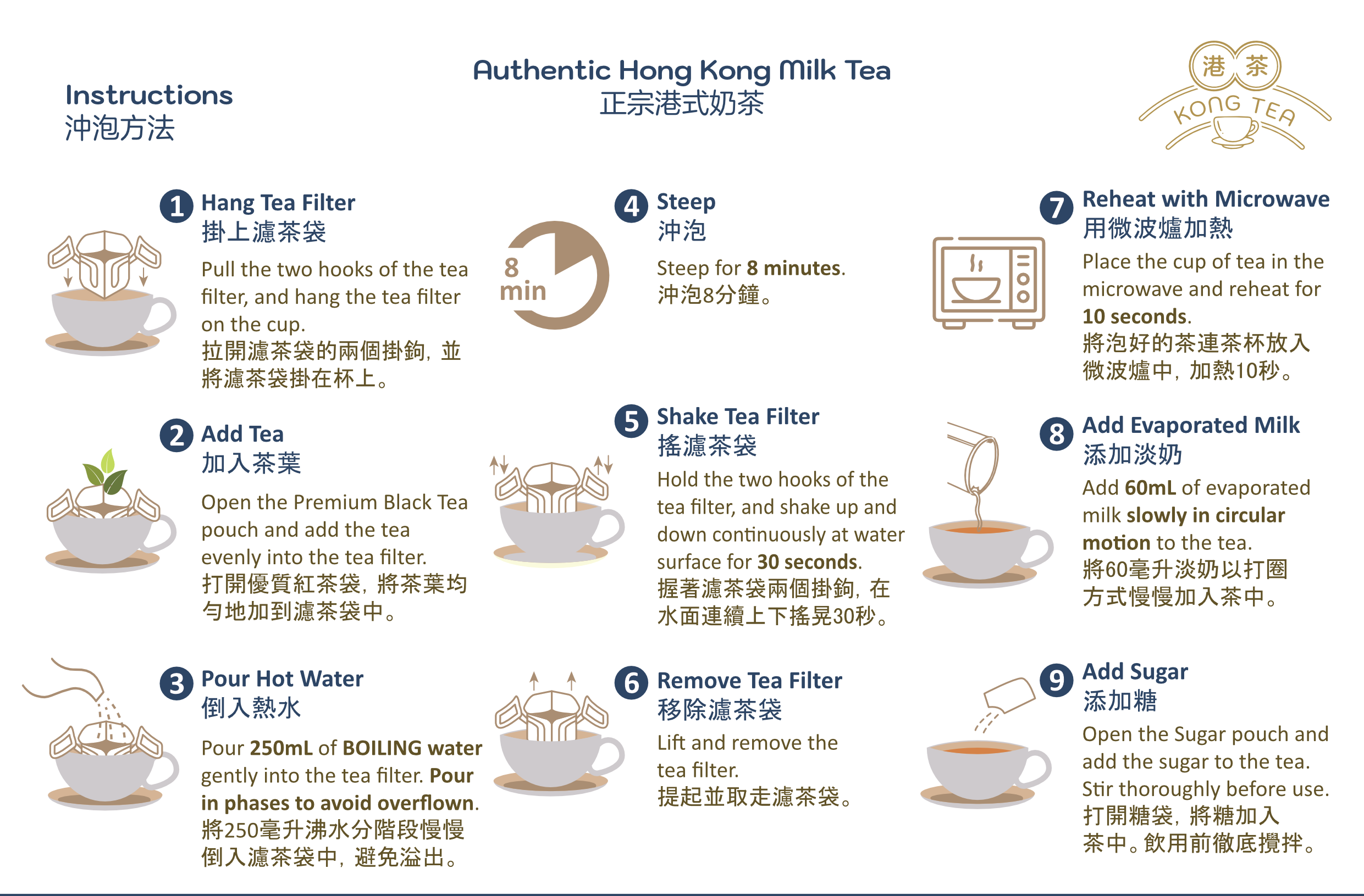 Experience the food culture of Hong Kong with our signature Authentic Hong Kong Milk Tea. This classic blend combines strong black tea and silky evaporated milk to create a smooth, rich and flavorful milk tea. The most iconic drink originated from Hong Kong is now available at everyone's home!